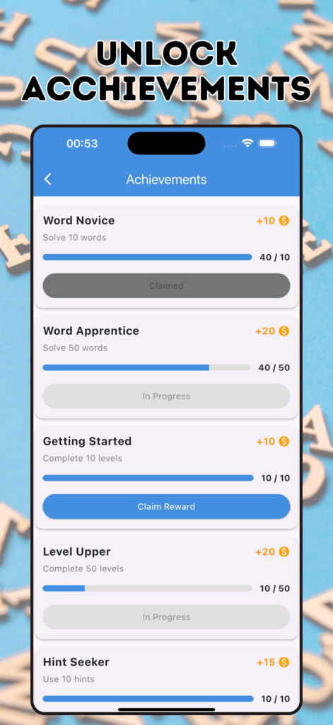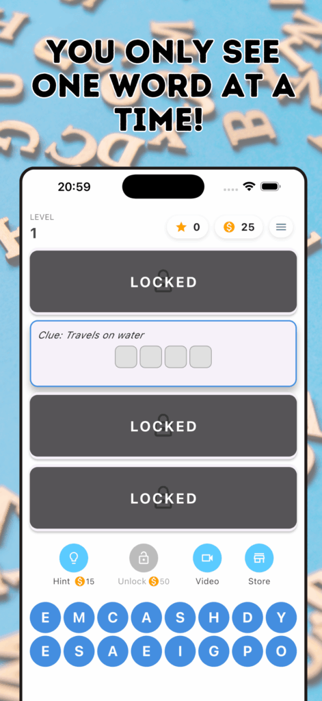 Each level gives you 4 hidden words to solve. The twist? You only unlock the next clue after solving a word – meaning every choice counts. Guess wrong, and you’ll be left with the trickiest leftover letters to crack.